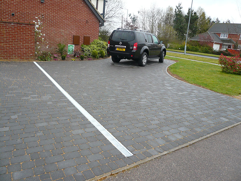 One of the most important components of your paving is the drainage. In times of heavy rainfall this system can be overloaded and cause flooding. This has resulted in changes to Government legislation. You need to decide how you manage the rainwater that falls on your driveway. You may direct the water to another area in your garden which may involve using a drainage channel and a soak away under your garden. You can use permeable paving or you can make no provision at all, but you will need PLANNING PERMISSION from your local authority.
